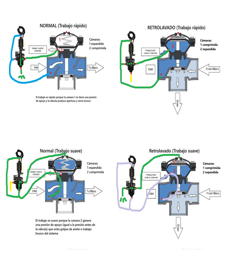 para alimentar el filtro, mientras durante la fase de retrolavado el flujo se invierte, llevando el agua de
