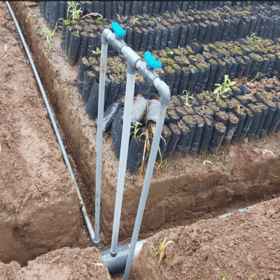 - 137 aspersores colocados en disposición 8 x 9 metros entre sí