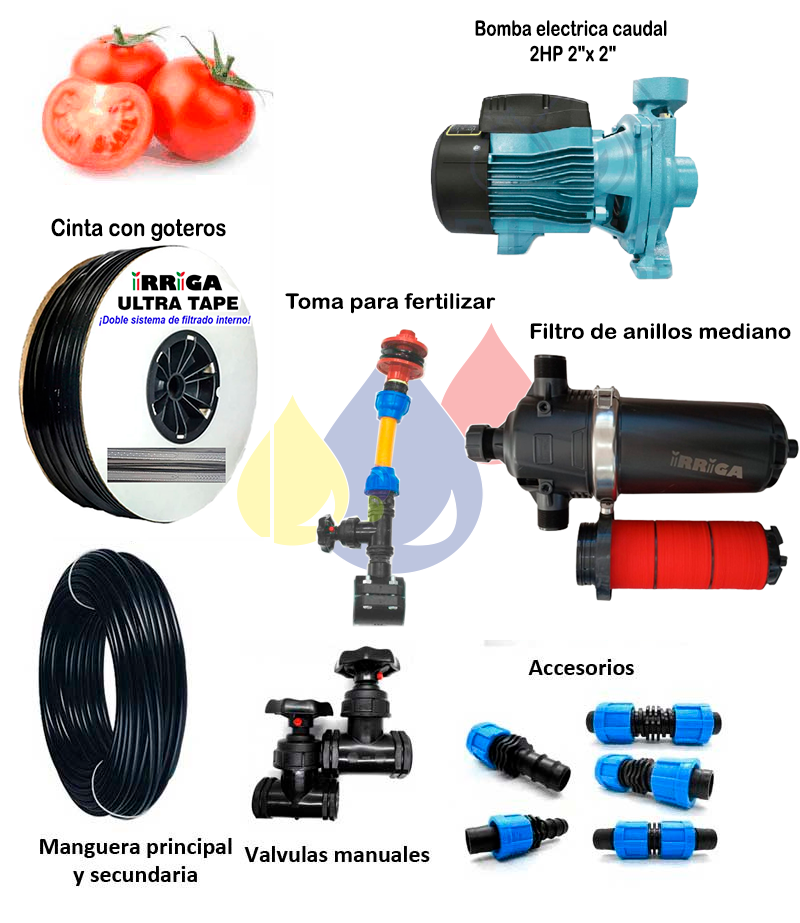 Kit aji Eco 1 ha + Bomba Leo 2hp + Filtro + Valvulas + Cinta