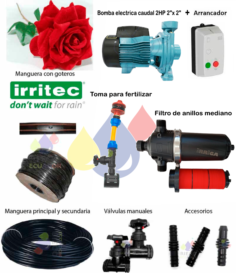 Sistemas de riego en invernadero y campo abierto.