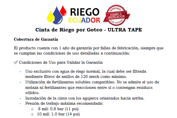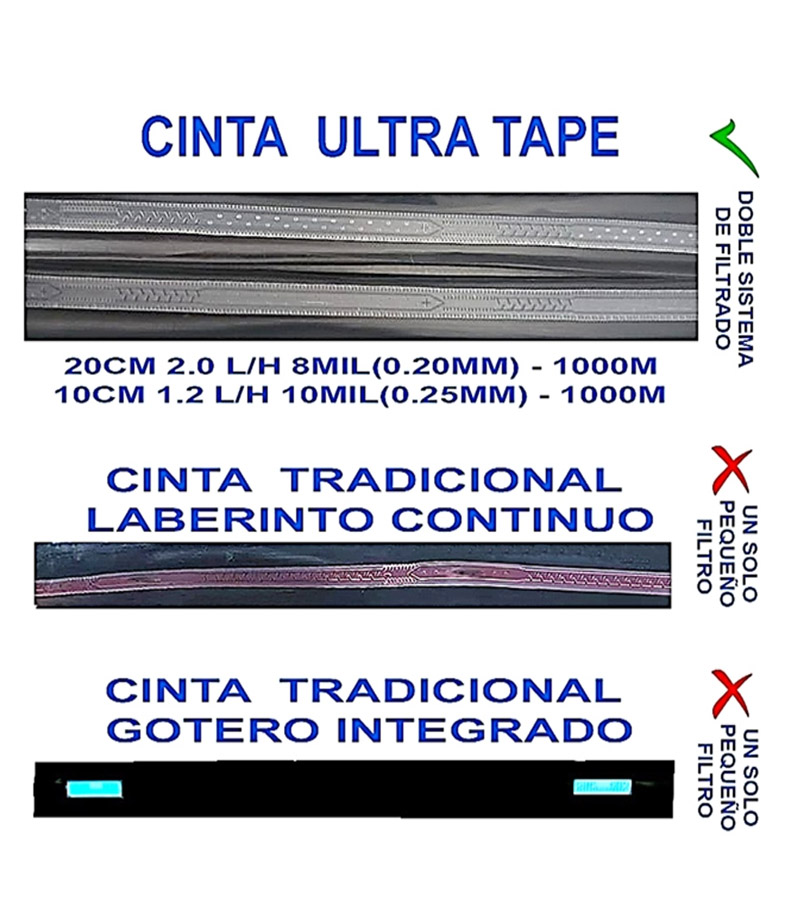 Cinta con goteros ULTRA TAPE 1000 metros - Pared Normal 8MIL - 20cm
