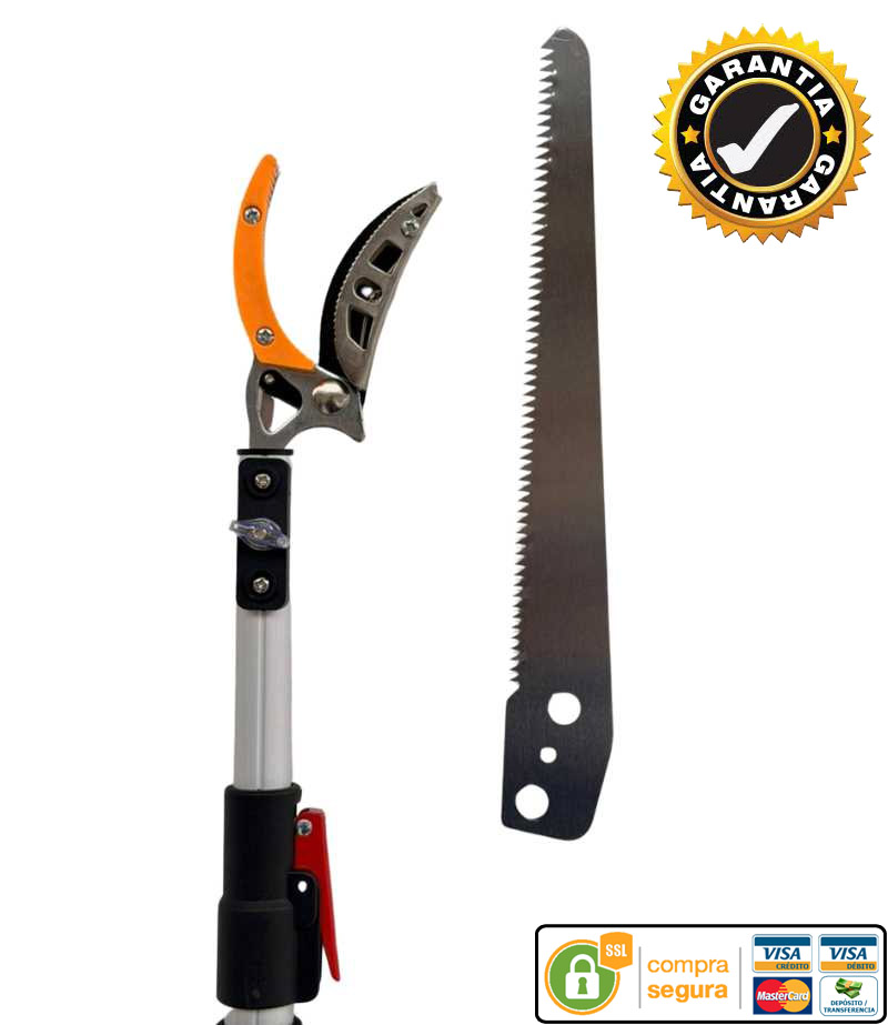 TIJERA CORTADOR DE RAMAS ALTAS - 1.4M A 3 METROS - EXTENSIBLE TELESCOPICA - INCLUYE SIERRA Adicionar a FavoritosTijera ramas altas Extensible teléscopica