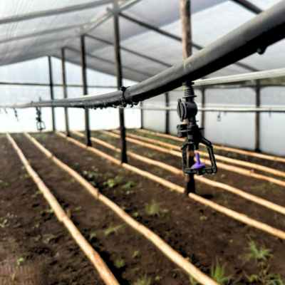 Sistema de riego para invernadero de plantas medicinales, verduras y frutillas.