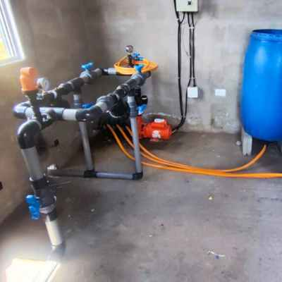 Implementación de filtro de grava, filtro de control y riego para nuevo invernadero de Crisantemos